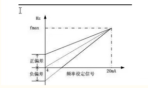 在給定信號(hào)從0增加至最大值的過程中(如4~20mA),給定頻率fX線性的從0增大至最大頻率的頻率給定線就是基本頻率給定線。如給定信號(hào)I=4~20mA, 要求對(duì)應(yīng)的頻率為0~50Hz,如圖1所示。