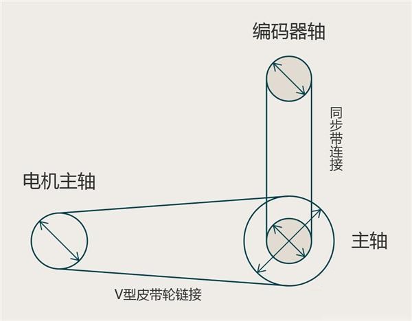 主軸與外部編碼器之間通過同步帶連接,上側(cè)編碼器軸,下側(cè)主軸,兩同步輪模數(shù)相同。